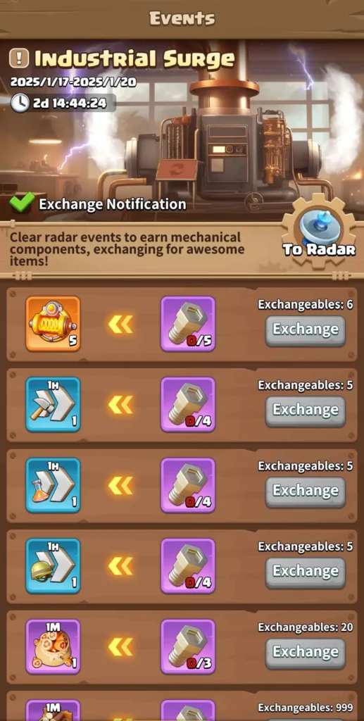 “Industrial Surge” is a new event in Dark War Survival. During this event, you need to complete “Radar Missions” at the “Radar” building. By finishing these missions, you will earn special items. These items can then be exchanged for rewards.