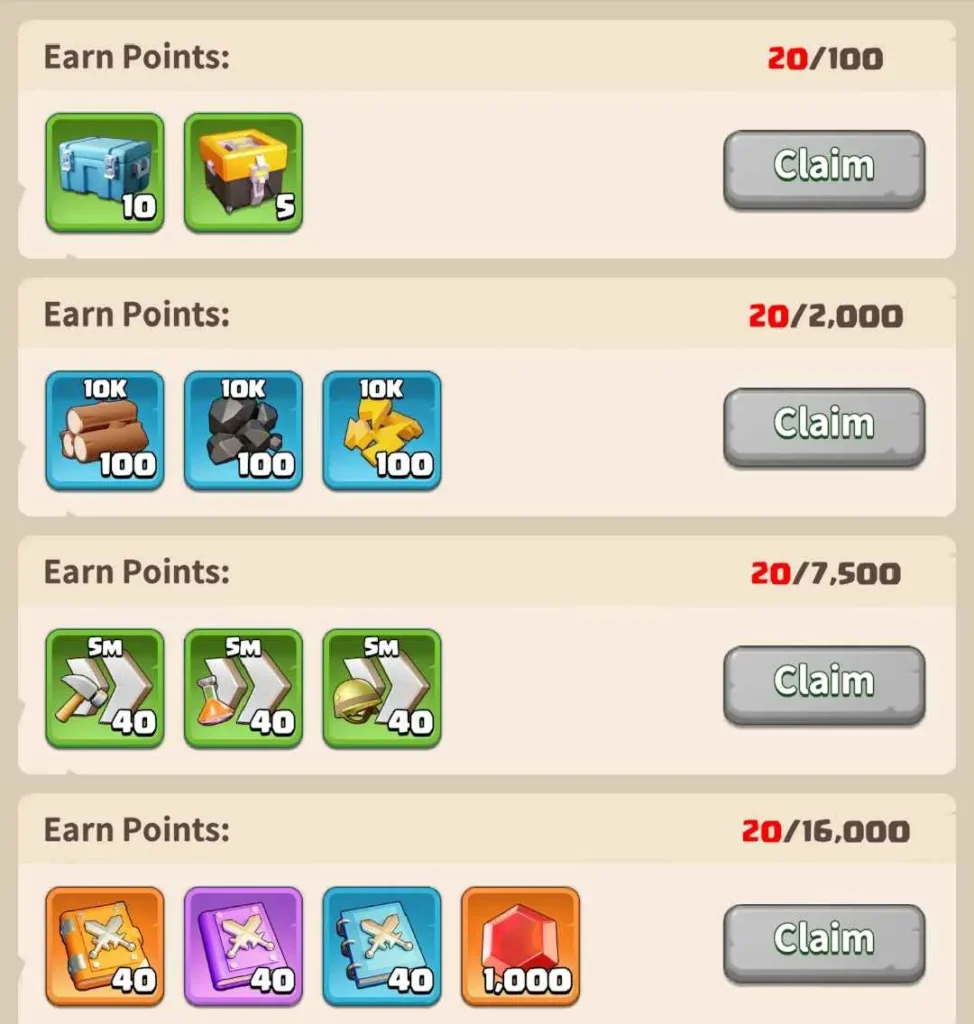 - Earn points by completing specified tasks. Reach the target to receive progress rewards.