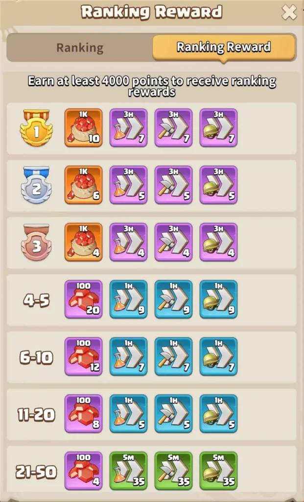 - At the end of the event, ranking rewards will be distributed based on points earned during the event.