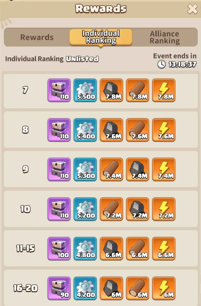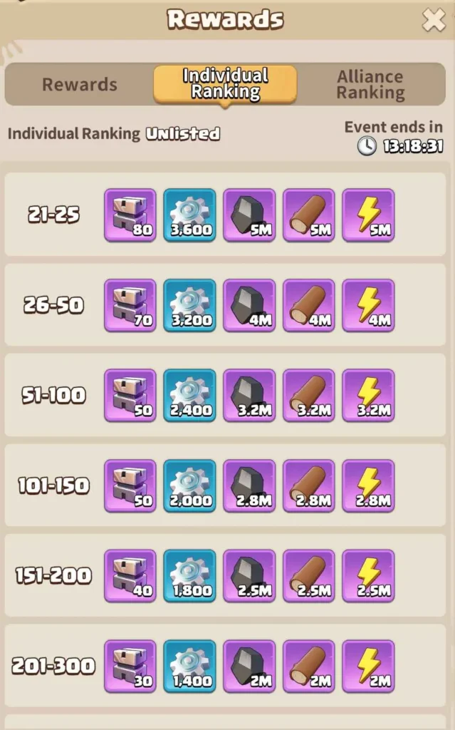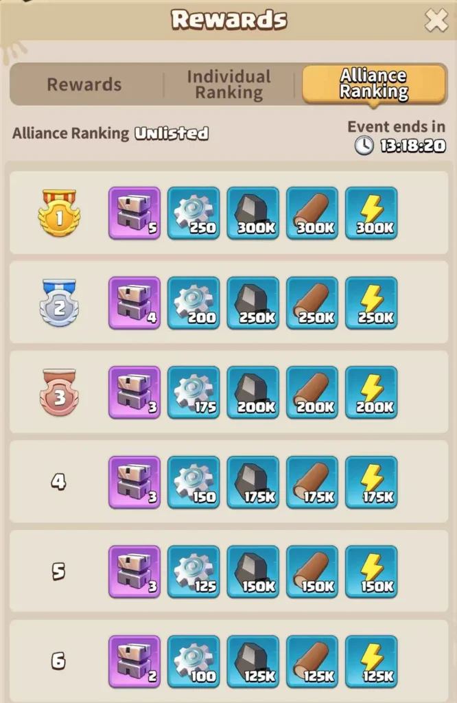 - Note B: Ranking rewards will be distributed via mail at the end of the event. Leaving the alliance during this period will disqualify you from receiving alliance ranking rewards.